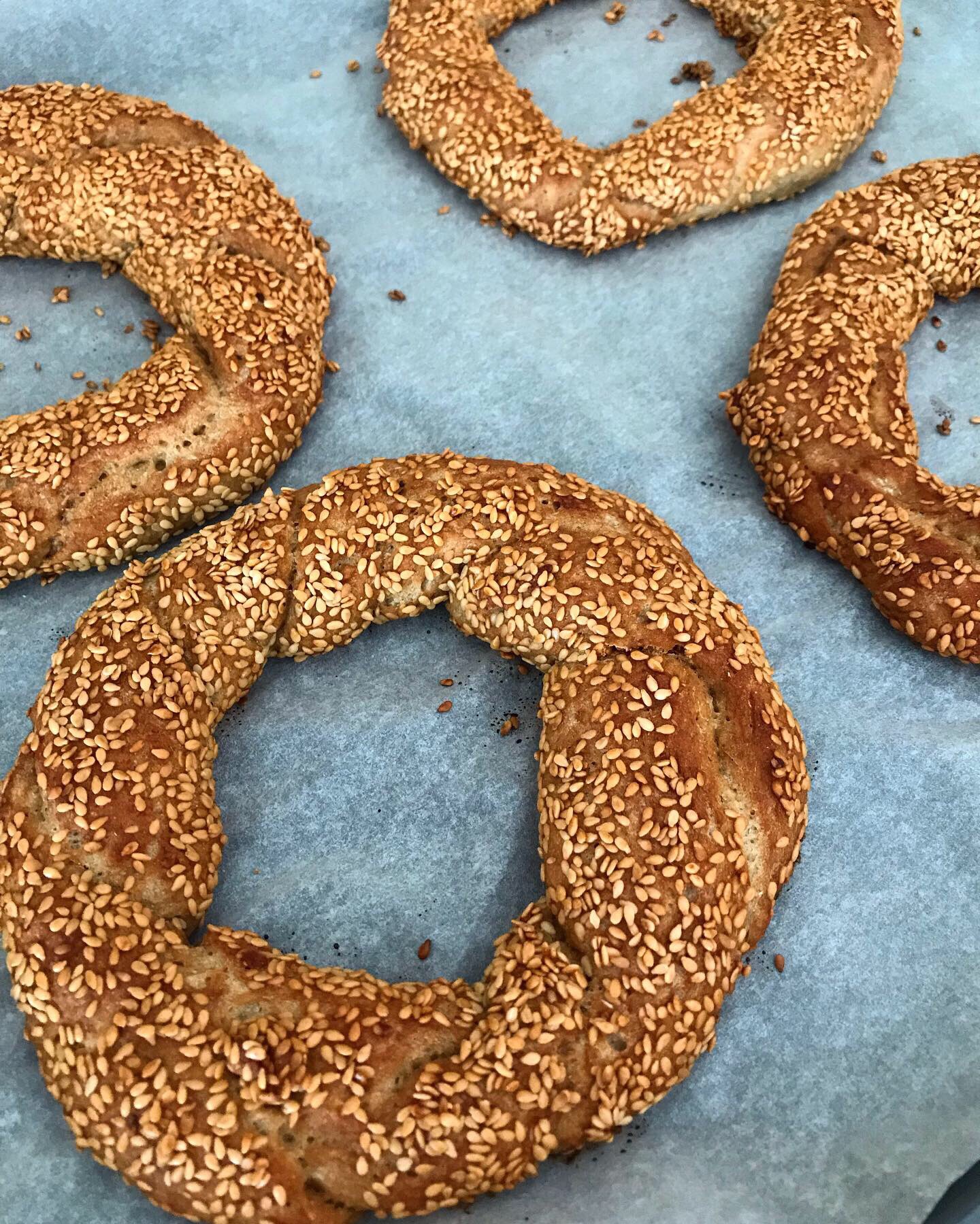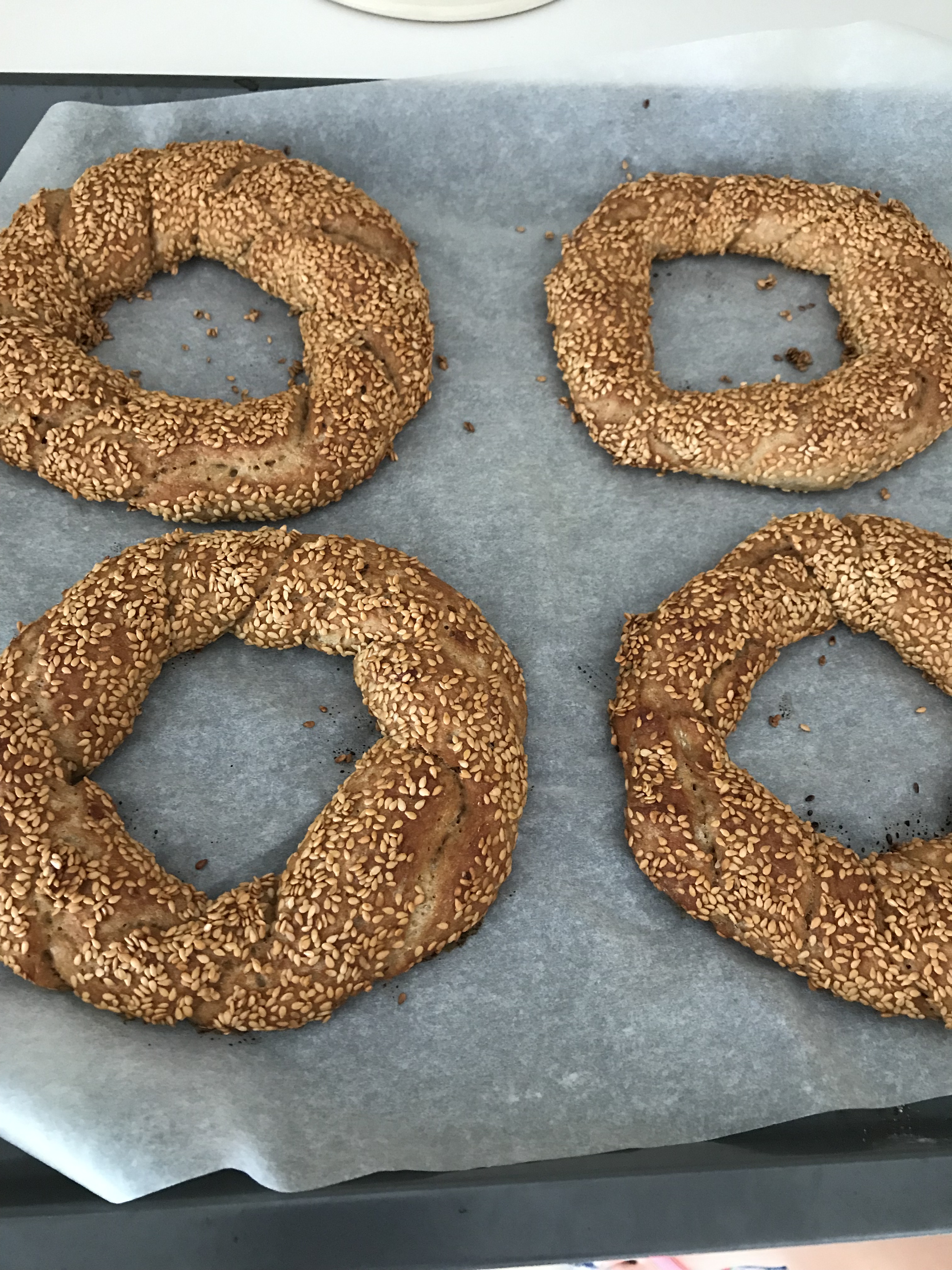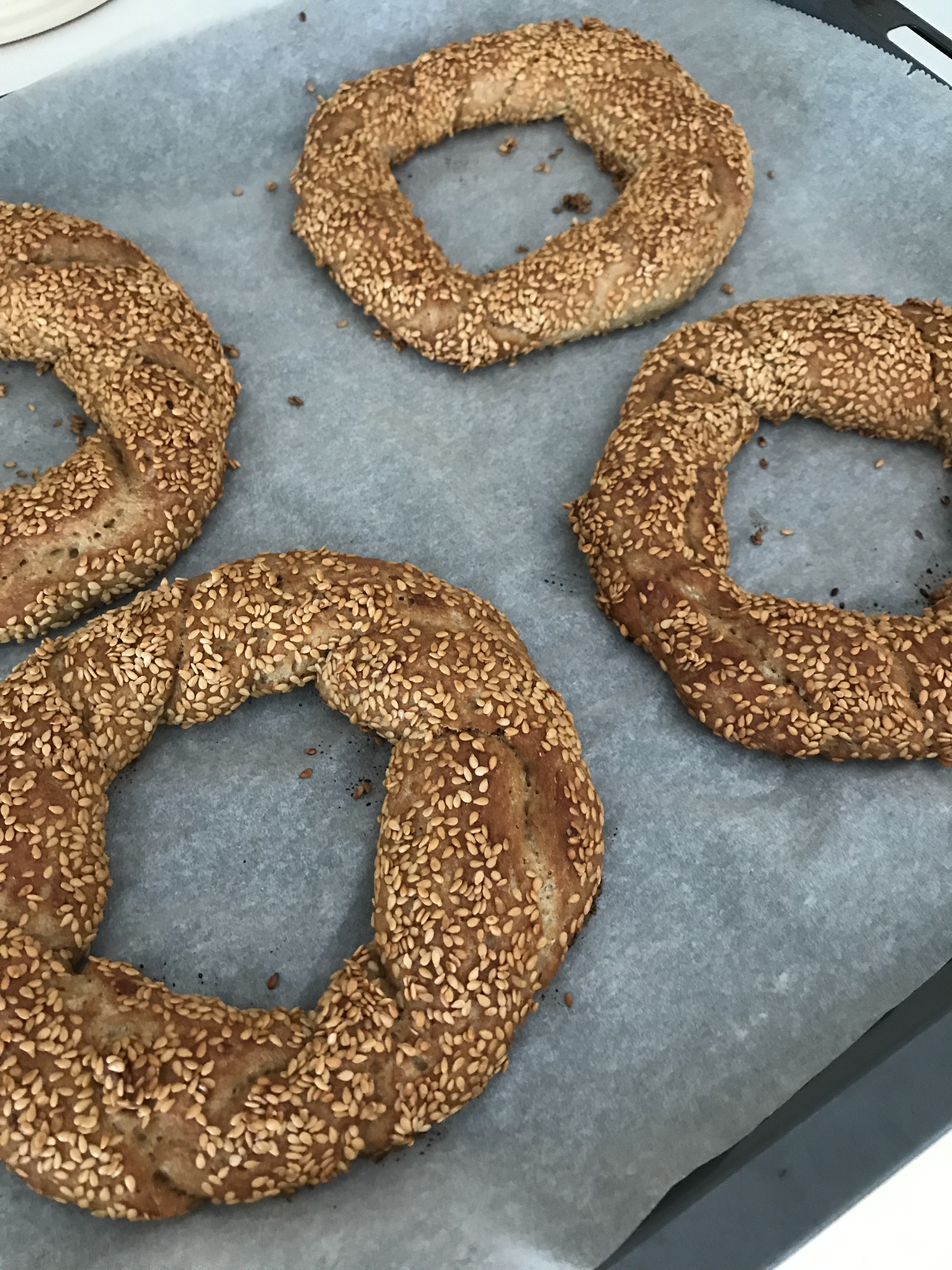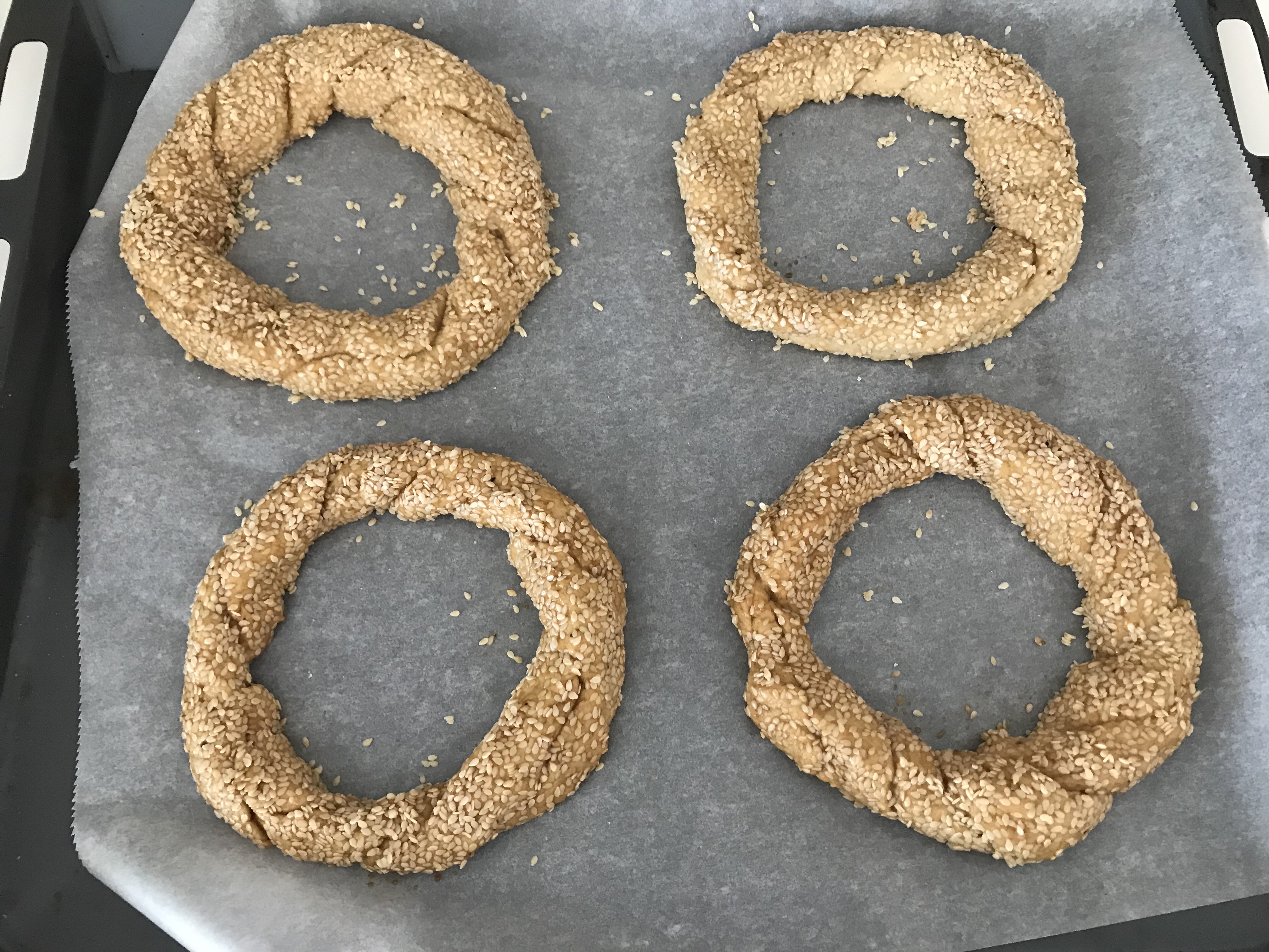 ^Şekil verdiğiniz hamuru ilk pekmezli suya ondan sonra susama bulayın ve yağlı kağıt serdiğiniz tepsiye koyun.